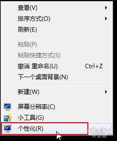 1、在Windows7系統(tǒng)桌面空白處點擊鼠標右鍵,選擇”個性化“。
