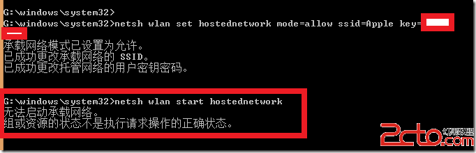 否則是看不到虛擬網(wǎng)卡的,沒有添加虛擬網(wǎng)卡就無(wú)法啟動(dòng)承載網(wǎng)絡(luò)。用命令操作的時(shí)候會(huì)提示如下的錯(cuò)誤。