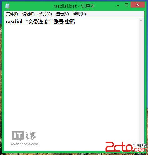 1、新建記事本,輸入(rasdial “寬帶連接” 賬號 密碼),另存為rasdial.bat,保存類型為所有文件。