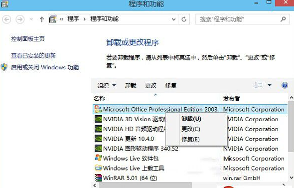 步驟二、點擊“卸載”即可直接打開控制面板“程序和功能”的“卸載或更改程序”窗口。如圖: