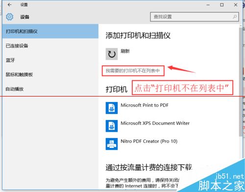 2、在彈出新窗口中,找到“添加打印機或掃描儀”。點擊后會出現“正在搜索打印機或掃描儀”,這個時候稍等一下,可以看到“我需要的打印機不在列表中”。