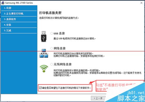 7、取出買打印機時候贈送的光盤,或者搜索打印機型號下載。根據提示安裝。這里有些需要說明的地方。這里推薦使用“確定希望在不連接打印機的情況下安裝軟件”,不要選擇其他選項。