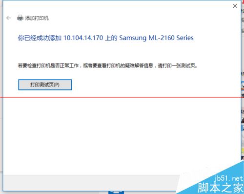 8、安裝完成后,在執行一次上面的步驟。我們我們看到,這次的就成功的添加上打印機了。在完成的時候,會有一個打印測試頁的按鈕,我們不要去點它,直接點擊“完成”即可。