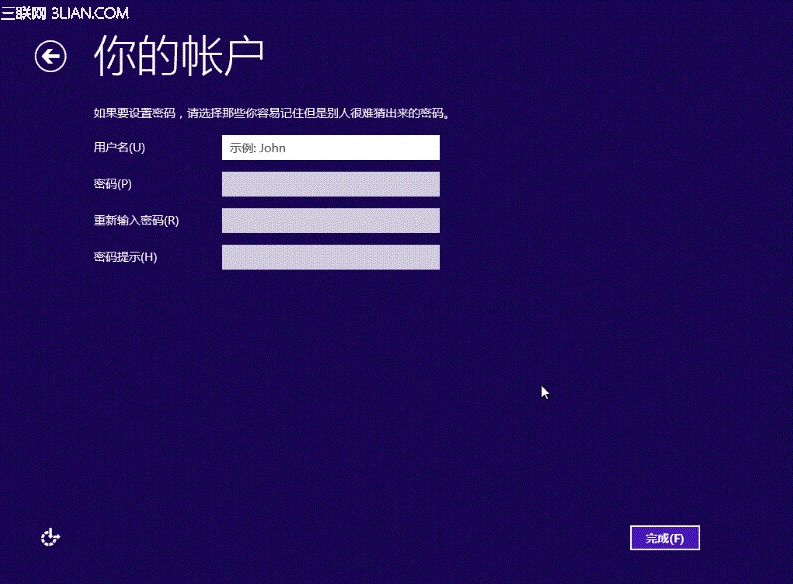至此,賬戶設置完畢,點擊完成等待系統自動加載直到進入桌面。