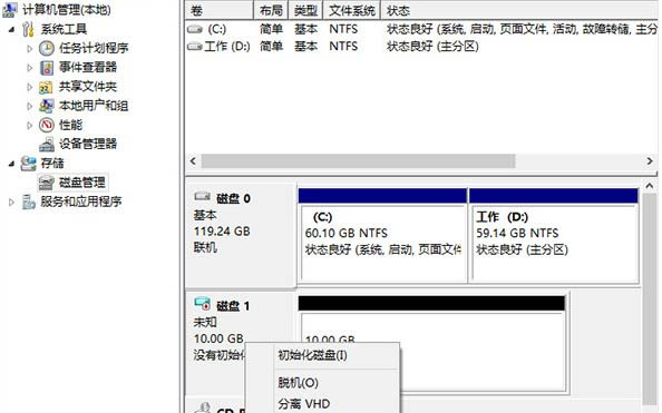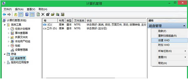 1、以Win8.1工作環境為例。打開計算機右鍵,選擇磁盤管理操作,創建VHD;