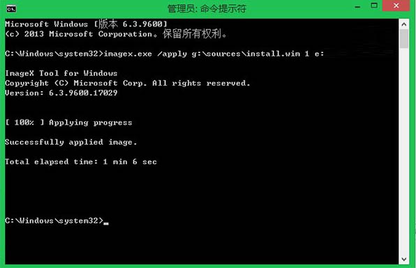 //即將X:sourcesinstall.wim映像部署到當前Y:虛擬磁盤,其中X代表虛擬光驅盤符、Y代表當前虛擬磁盤盤符。