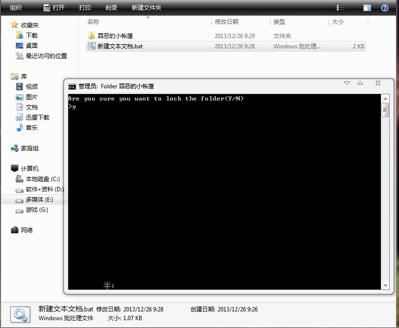 運行,輸入Y,文件夾隱藏