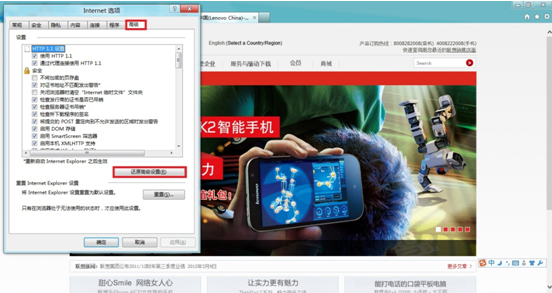 注意:還原高級設置一定提醒用戶還原高級設置后可能一些銀行驗證信息認證或賬戶密碼等無法使用或丟失。