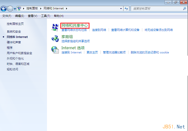 3.在打開的界面中點(diǎn)擊“網(wǎng)絡(luò)和共享中心”