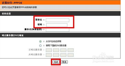 輸入你的用戶名和密碼,點擊完成