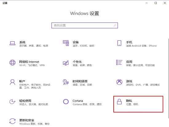 1、我們可以在開始菜單打開Windows設置,選擇點擊“隱私”項。