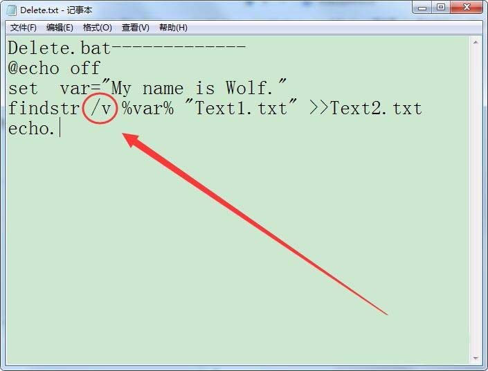 8、程序中的v參數,英文是invert,意思為“反轉、使顛倒”,即刪除指定字符串。