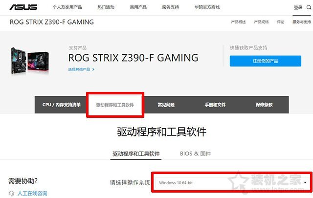 2、點擊“驅動程序和工具軟件”,選擇您的操作系統,我的系統是Windows10 64位,對應選擇。