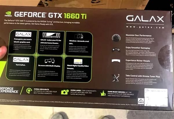 目前網(wǎng)上已經(jīng)曝光出了多家品牌的GTX1660Ti顯卡,首先是影馳的包裝盒,以往宣傳光線追蹤的地方變成了Turing Shaders,并透露新卡配備兩個(gè)90mm風(fēng)扇、擁有6GB/192Bit GDDR6顯存、支持一鍵超頻、支持DVI/HDMI/DisplayPort三種輸出接口。