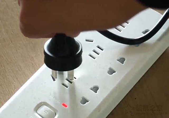 3、將電源線另一端插入電源,為電源供電,記得如果電源上有開關(guān),將其開啟,如下圖所示。
