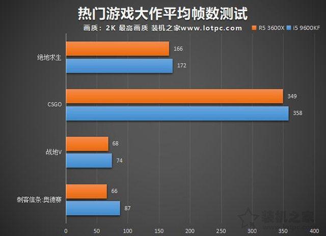 在2K最高畫質中,intel酷睿i5 9600KF在所有測試的游戲下完勝,能夠看出intel在玩游戲方面還是占據較大的優勢的。
