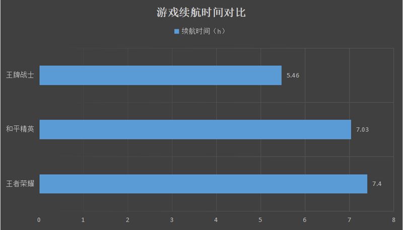 除了《王牌戰(zhàn)士》續(xù)航時(shí)間較短外,無論是《和平精英》還是《王者榮耀》都可以達(dá)到7小時(shí)左右的續(xù)航。