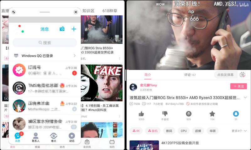 借助智慧分屏 可以一邊看視頻一邊聊QQ