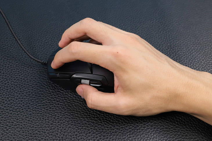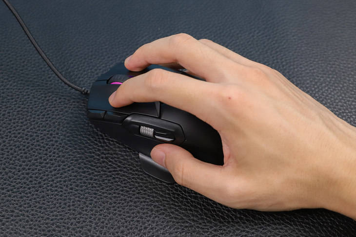 當(dāng)鼠標(biāo)雙側(cè)翼為收回狀態(tài),更加適合小范圍的高速移動操作。當(dāng)只有鼠標(biāo)左側(cè)翼展開時,對大拇指有較好的支撐,適合橫向移動比較多的射擊類游戲。鼠標(biāo)左右側(cè)翼都為展開狀態(tài)時,對大拇指、無名指都能提供支撐,日常使用更加舒適。雙側(cè)翼的自由組合度較高,可以根據(jù)自己的喜好進(jìn)行調(diào)整。