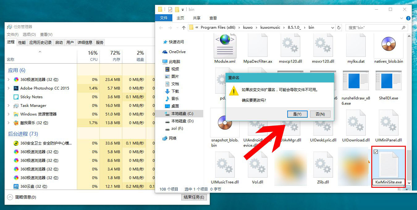2、定位到彈窗軟件之后,我們將其復(fù)制一個副本保存到其他位置,防止程序出錯。我們將定位的彈窗程序的文件名稱復(fù)制出來,切記一定要包括文件的擴(kuò)展名。名字復(fù)制好之后就可以將這個程序直接刪掉了。