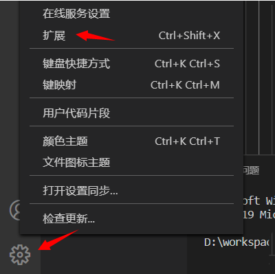 2、如果左側沒有擴展圖標,可以點擊【設置】圖標,然后點擊【擴展】