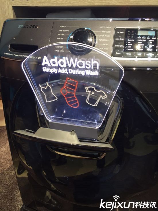 在CES 2016上亮相的三星AddWash洗衣機,具備智能檢測、智能控制等技術(shù),并且在主機門上方設(shè)置了一個額外的機門,用戶可以由此門方便的添加漏洗或臨時著急清洗的衣物,更加輕松便捷。