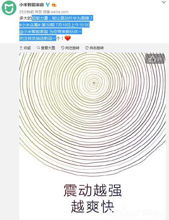 小米新眾籌細思極恐,震動變震撼小米要出震動棒?小米眾籌再次發布,這已經是小米第39起眾籌活動了,前幾日小米眾籌了小米空調伴侶現在早已成功,而今天小米公布了新的眾籌海報,海報以震動越強越爽快為題展現出小米越來越污的本質,額跑題了,那么小米這次的新品真的是震動棒嗎?...