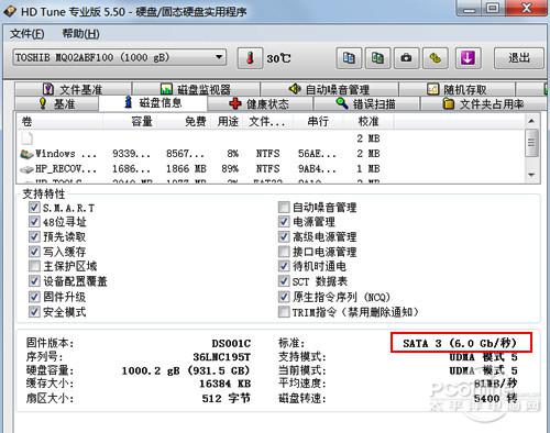 之前看有人說可以直接用‘魯大師’來查看接口類型,其實這種說法并不嚴謹。它所得出的測試結果,只是顯示你當前硬盤的接口類型,并非是主板本身的接口類型,不要混為一談。如果怕麻煩,懶得自己拆機,最簡單的辦法是通過‘HD Tune’軟件來查看。基本的信息搞定之后,繼續(xù)往下走。