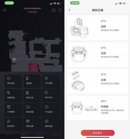 目前大部分的掃地機(jī)器人都可以直接靠手機(jī)端來(lái)操作,R55 Cyclone 在這點(diǎn)上也不例外,基礎(chǔ)功能如清掃面積、剩余電量和吸力調(diào)節(jié)等都可以直觀的在手機(jī)端查看,此外還可以設(shè)定定時(shí)清掃,同時(shí)顯示各種耗材的剩余使用壽命等,整體還是十分簡(jiǎn)潔方便的。