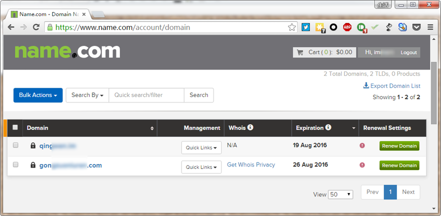 2、在Name.com購買域名
