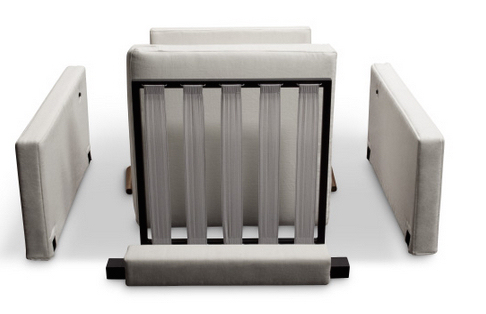 “Campaign”家具與眾不同的是它的設計組裝過程及其簡單,而且節省了運輸成本。Sewell設計的家具在不使用工具的情況下幾分鐘之內就可以完成裝配和拆卸。更重要的是,拆卸后的家具完全可以放進盒子并通過UPS和聯邦快遞發貨,解決了大型家具令人頭痛的運輸問題。