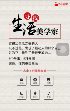 近日,中國最大的本地生活服務(wù)平臺58到家發(fā)起了“尋找生活美學家”活動,活動自上線一周以來,已有來自職場、美食、藝術(shù)、時尚、創(chuàng)業(yè)、音樂六大領(lǐng)域的生活美學家參與,分別講述了自己長期使用58到家服務(wù)所帶來的生活之美。