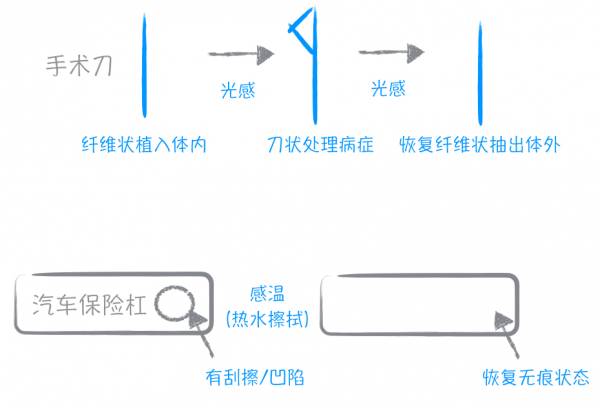 “這種智能材料開(kāi)發(fā)技術(shù)源于自然界,并非如電影中所描述的天外來(lái)物。”徐立思介紹說(shuō),“一開(kāi)始人們無(wú)意間發(fā)現(xiàn)有些合金,對(duì)其施加外力改變形狀,一旦溫度升高至40、50度,這些合金又會(huì)自動(dòng)恢復(fù)最初形狀。這種帶有形狀記憶功能的合金逐漸在航天、軍工方面有較廣泛應(yīng)用。后來(lái)科學(xué)界注意力逐漸由合成這種特性合金,轉(zhuǎn)變?yōu)檠邪l(fā)智慧化的聚合物,畢竟聚合物成本更為低廉,應(yīng)用場(chǎng)景也比合金類(lèi)更為廣豐富。”