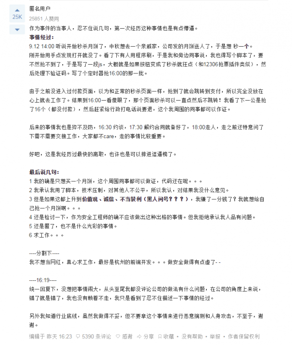中秋“慘案”!阿里程序員寫(xiě)代碼搶月餅被開(kāi)除!