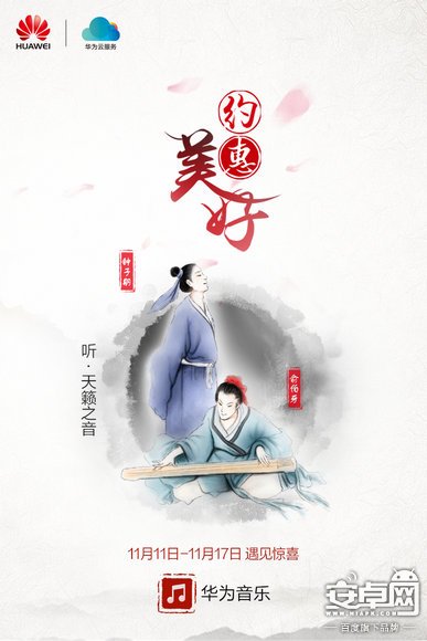 華為音樂(lè)與華為視頻同步推出11月11日會(huì)員專場(chǎng)活動(dòng),“俞伯牙與鐘子期”的墨色渲染,配上“約惠好歌”的活動(dòng)主題,華為音樂(lè)于2016年11月11日,正式將“約惠美好”活動(dòng)頁(yè)面在首頁(yè)推出。活動(dòng)期間內(nèi)開(kāi)通會(huì)員,華為音樂(lè)推出充值多少送多少花幣的驚喜優(yōu)惠,吸引大批音樂(lè)發(fā)燒友參與其中。