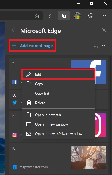 打開Edge Canay-前往任何一個網(wǎng)址-點擊收藏圖標-創(chuàng)建一個命名為Microsoft Edge的新收藏夾/地址欄輸入edge://flags#edge-collections并啟用收藏標志-單擊“添加到當前頁面”,將新網(wǎng)站添加到收藏夾中-右鍵單擊網(wǎng)址并單擊“編輯”-刪掉網(wǎng)站文本用S換掉,重復四次依次拼出U、R、F組成S.U.R.F。