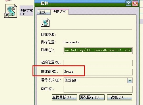 圖2 病毒創(chuàng)建的快捷方式,可見按空格會導(dǎo)致病毒程序運(yùn)行