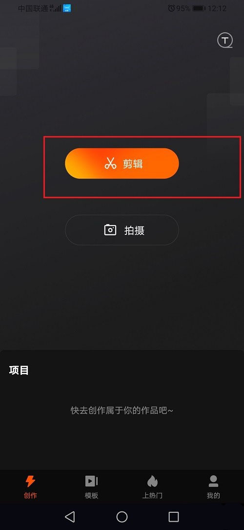1、打開快影,進去創作界面,點擊剪輯,如下圖所示: