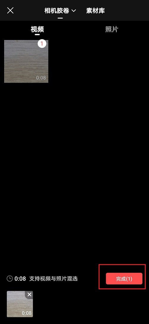 2、選擇要剪輯的視頻,點擊完成,如下圖所示: