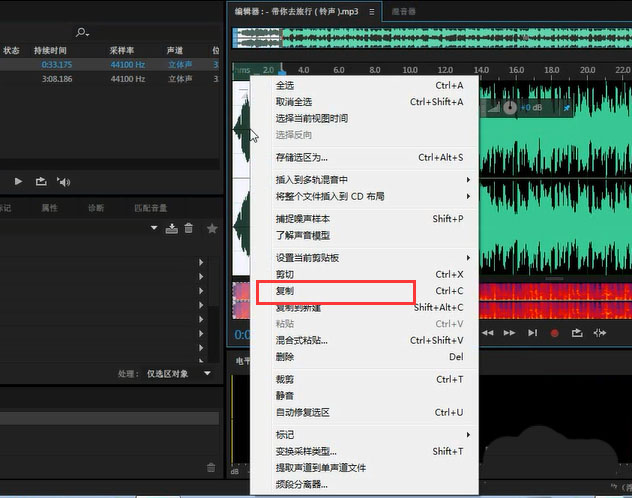 3、我們選中其中的一節音頻之后選擇復制