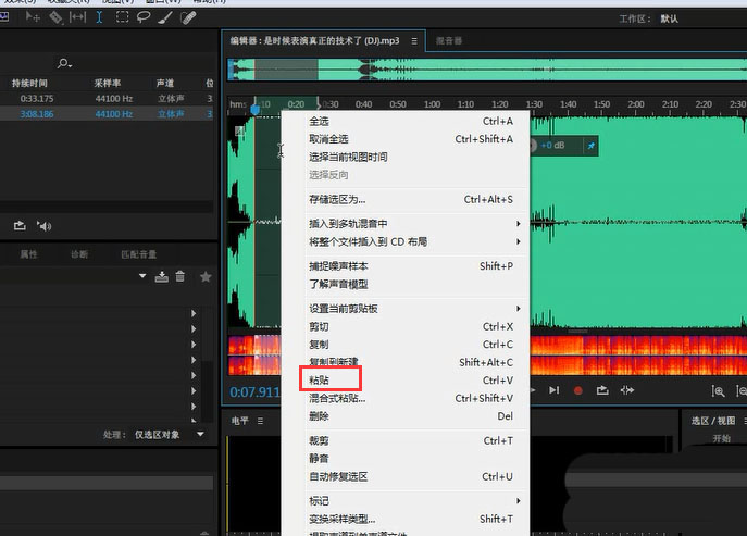 4、在選擇第二個音頻 之后粘貼 這樣我們一前一后的制作就完成了
