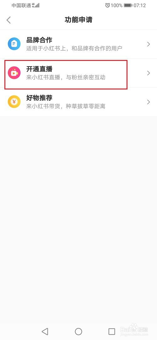 第三步進去功能申請之后,點擊開通直播,如下圖所示: