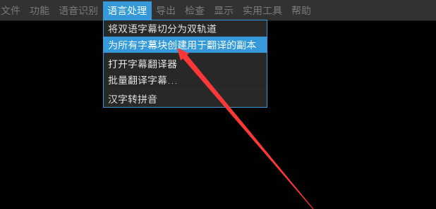 3、然后在語言處理菜單列表選擇”為所有字幕塊創建用于翻譯的副本“選項