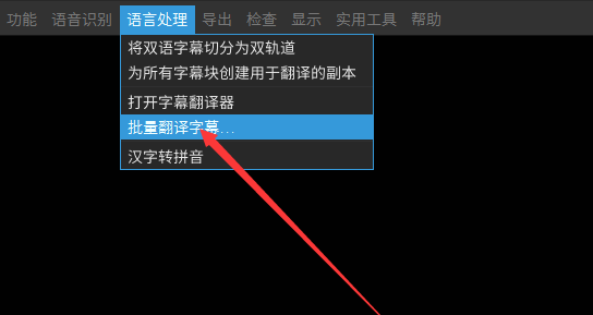 5、此時在時間軸中創建了副本的字幕后在菜單再選擇”語言處理“選項