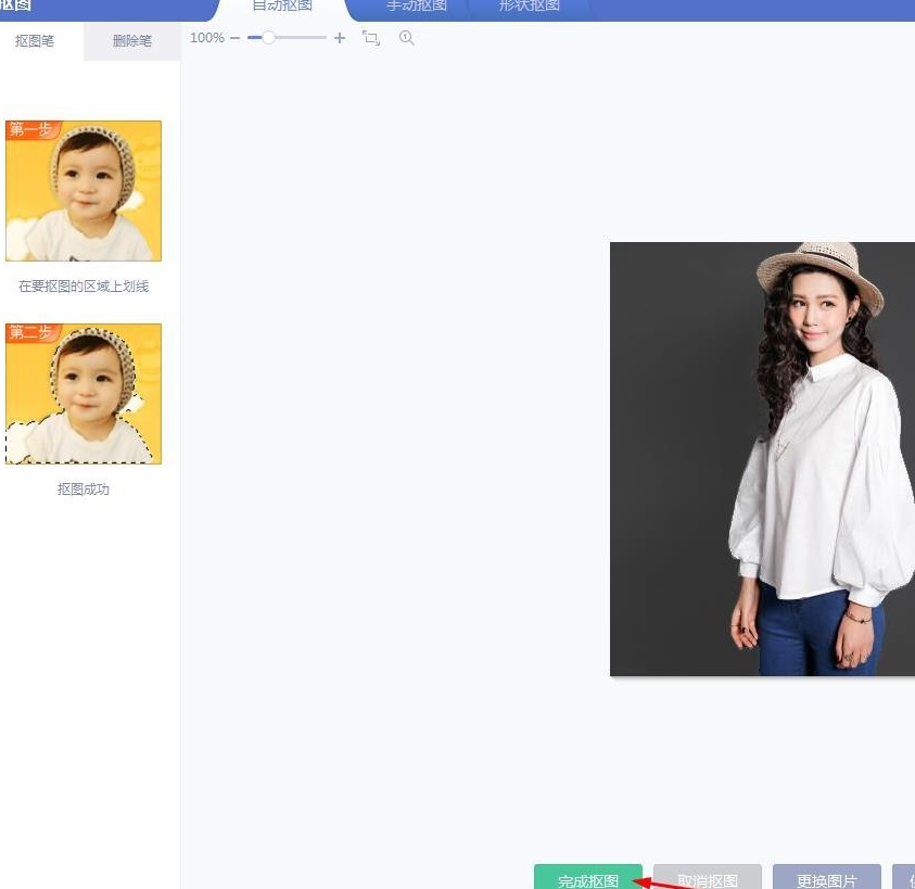 第三步:在左側的三種摳圖方式中,選擇第一種“自動摳圖”。