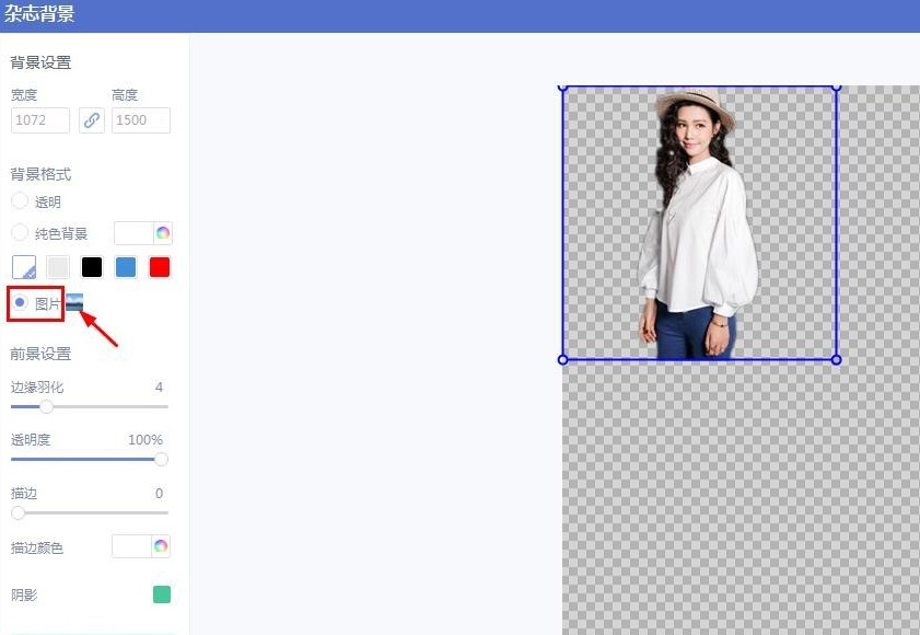 第五步:在“雜志背景”對話框中,選中“圖片”選項,鼠標左鍵單擊圖片圖標。