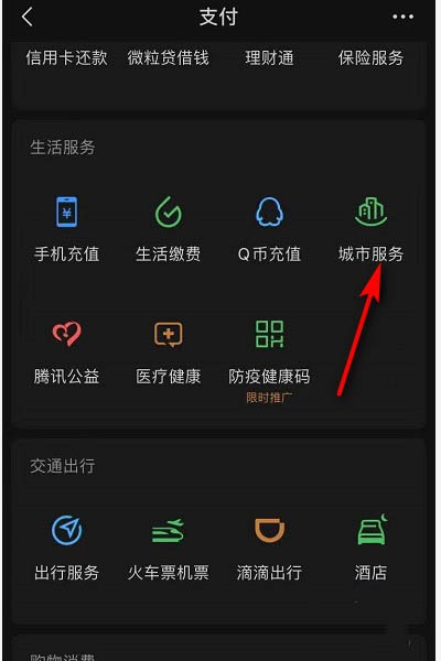 1、首先進(jìn)入微信的支付,點(diǎn)擊城市服務(wù)。