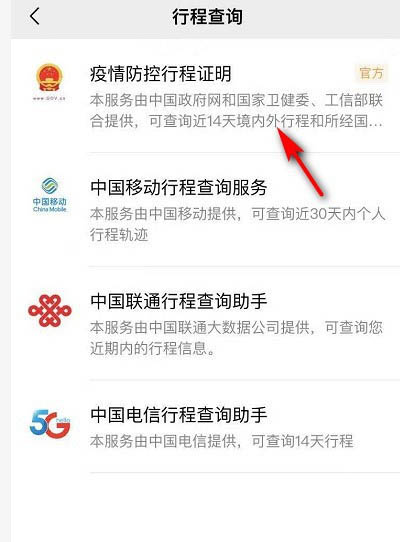 3、然后在行程查詢中點(diǎn)擊疫情防控行程證明。