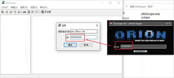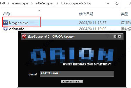 1、在本站下載解壓,得到exescope 6.50中文版程序和注冊機;