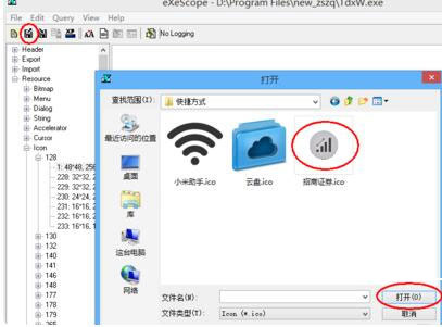 點擊“資源”,再點擊“圖標”,然后選擇需要修改的圖標;